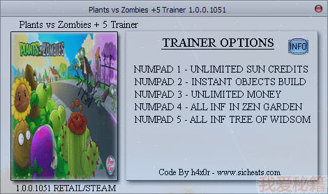 植物大战僵尸v1.0.1.1051修改器 + 5