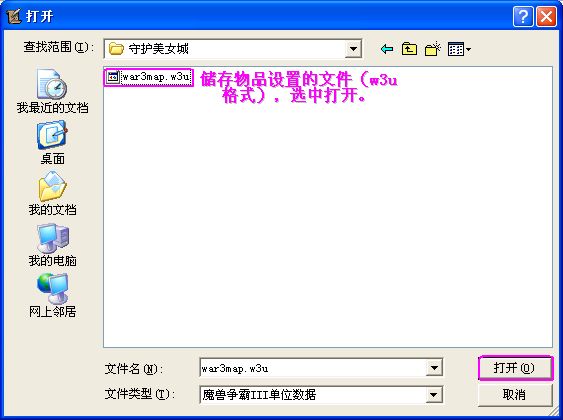 选择“输入单位设置”,将目录定义到刚才解压地图的目录,打开(W3u文件)。
