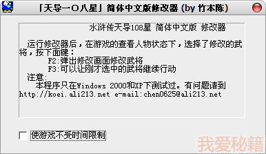 本程序只在Windows 2000和XP下测试过。有问题请到http://koei.ali213.net e-mail:chen0625@ali213.net