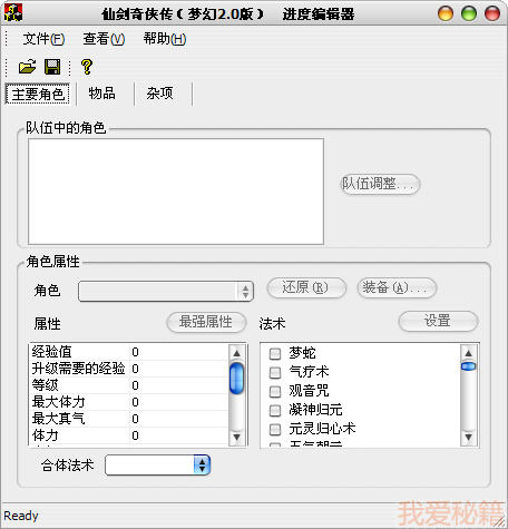 2. 可以修改6位角色的法术,每位角色可以选择32种法术(仙剑的限制);