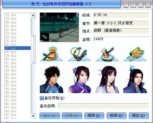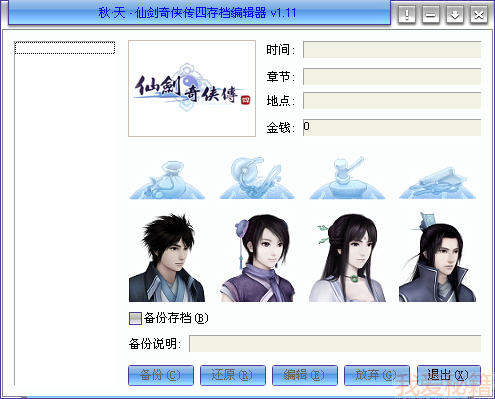 秋*天-仙剑奇侠传四存档编辑器 是一个专门针对仙剑奇侠传四游戏而开发的存档编辑工具,支持度广,功能强大。