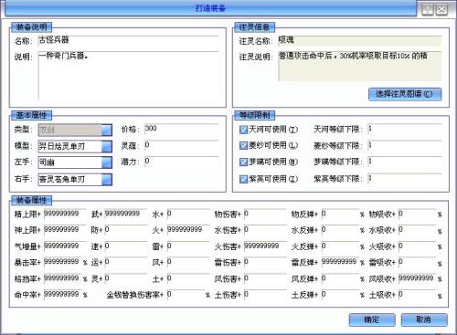 (4)编辑器对所有属性的数值设定允许的最大值是999999999,其中比率数值为最大7个9,普通数值最大值是9个9。当然需要说明的是: