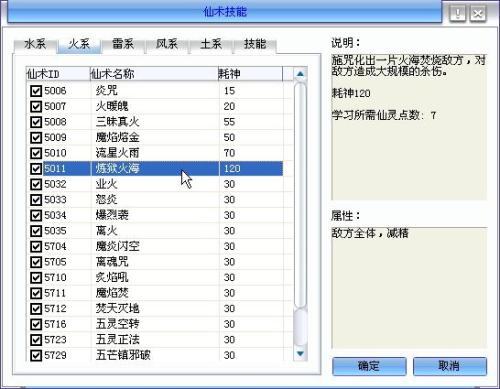 仙术技能编辑,所有仙术和可用技能均可在此选择: