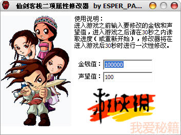 曾经试图修改过仙剑客栈中文版的玩家应该知道这个游戏无法调用任何的修改程序进行修改,因此这款虽然只修改了两种属性的内存修改器的含金量是相当高的,再次感谢ESPER_PALE的高技术作品!