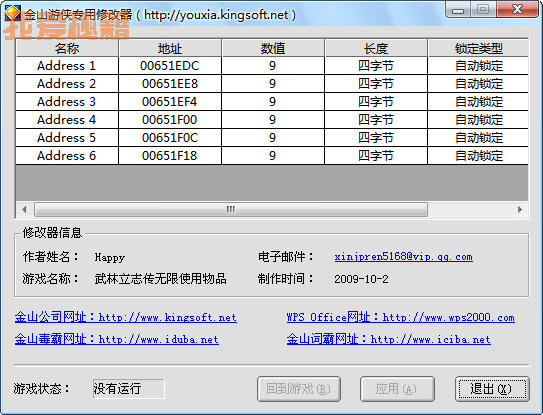 本人用金山游侠修改,已改了物品快捷栏,可以无限使用物品。