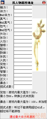 还有什么要求大家可以说下!等会我会放出一个算人物属性地址的工具给大家……报病毒的问题可能是易语言引起的,程序是用易语言写的。