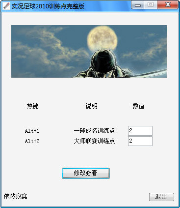 恩,游戏刚下好,先放出个简单修改器,专门修改训练次数的,上限255,进游戏点数值即可完成修改