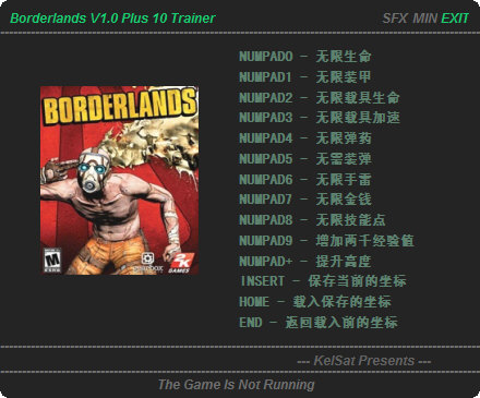 对应版本:Borderlands-RELOADED or Borderlands-Razor1911 (均支持)