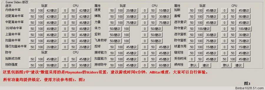 (2)修改器上的"球员速度"和球员属性中的不同,属于Sliders的一部分,默认只能在王朝模式中调整。