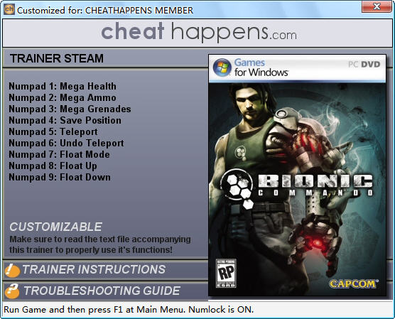 2、主菜单按 [F1] 激活修改器,激活成功会有 Activated 声音提示