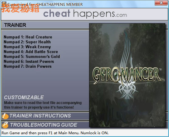 2、主菜单按 [F1] 激活修改器,激活成功会有 Activated 声音提示