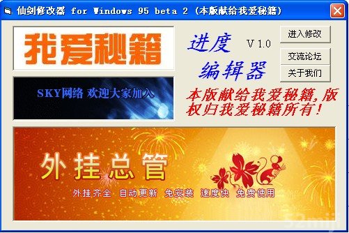 本修改器用于编辑 Win95版的仙剑奇侠传(R) 的磁盘进度文件