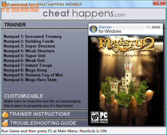 2、主菜单按 [F1] 激活修改器,激活成功会有 Activated 声音提示