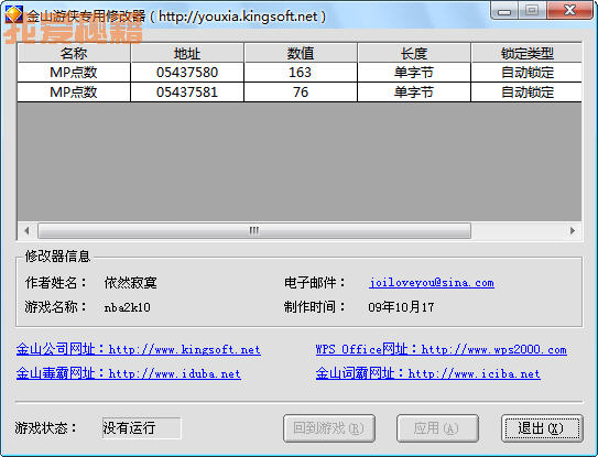 本修改器主要是修改生涯模式(((MP))),也就是一球成名模式。打王朝的要注意了....