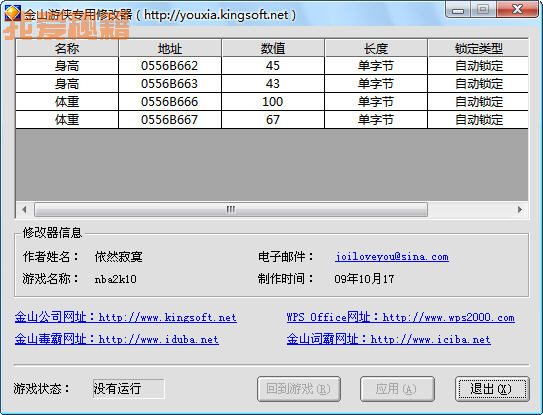 至于修改身高体重方法,那就是把身高的45和体重的100 改大改小,然后点应用,进游戏查看,直到自己满意为止。不可修改两个67.记住,两个67不要改。