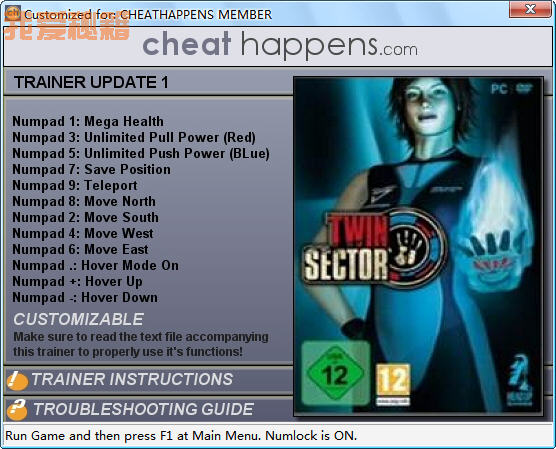 2、主菜单按 [F1] 激活修改器,激活成功会有 Activated 声音提示