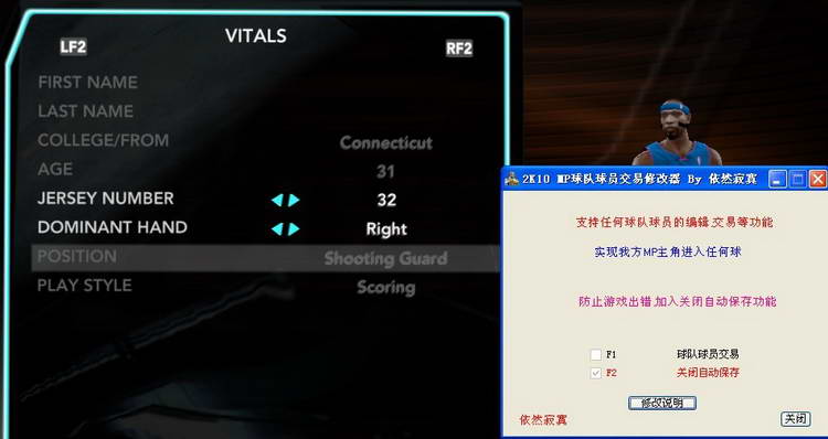 当然,它可以编辑一切球队的球员,包括自己,比如我在火箭,我想让科比和我搭档,通过这个修改器就可以实现,最后的一张图,就是我通过修改器去火箭的一张图