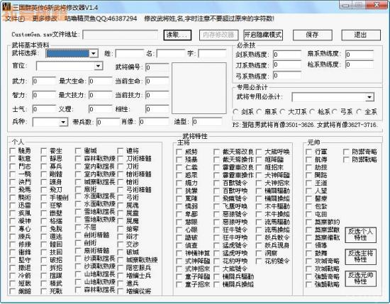 新武将全功能修改器v1.4,更能强大,支持修改新武将的所有数据。