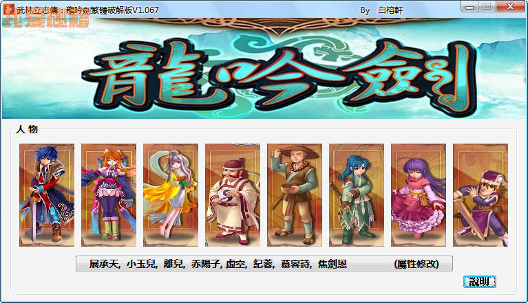 武林立志传:龙吟剑v1.067角色人物修改器
