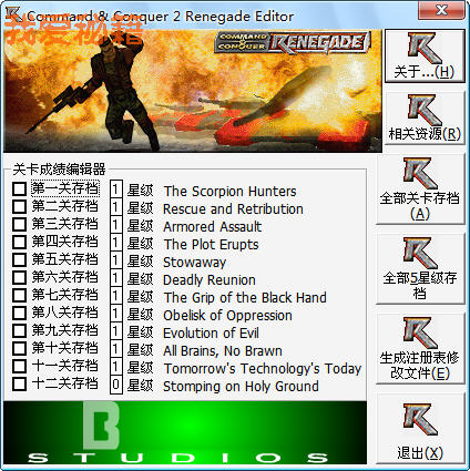 命令与征服之变节者(Command & Conquer Renegade)关卡存档编辑器(感谢剑宇潇湘制作并提供):