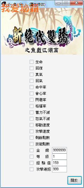 | 2010.02.27 | 新绝代双骄:鱼戏江湖v1.0.0.2修改器(最终版) + 18 | - | - |