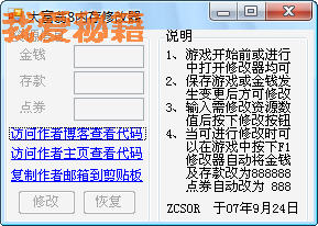 写修改器时用的是猪猪的一个破解版本【[BTPIG原创]大富翁8独家破解版@猪猪乐园@by樗里子】,其他版本未测试,这个版本只需要用虚拟光驱安装就可以了,呵呵,图方便。