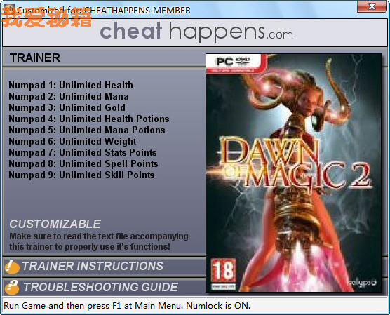 2、主菜单按 [F1] 激活修改器,激活成功会有 Activated 声音提示