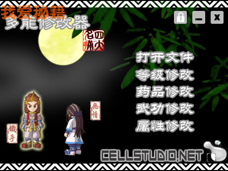 本款修改器只能够修改2位主角的全部属性值和金钱数量部分物品和武功。