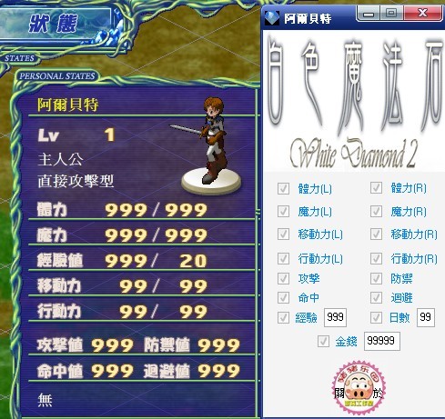 《白色魔法石》修改器的日数项,修改之后必须走动下才能修改成功,见谅下!呵呵!