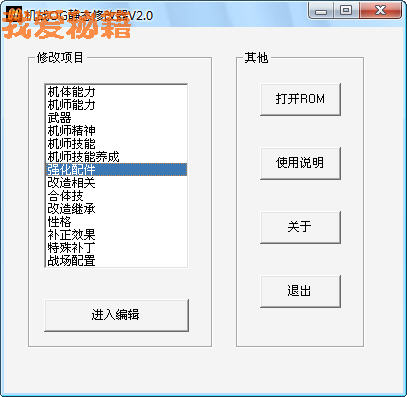 1.打开机战OG的ROM文件后,选定项目后按进入编辑,即可修改相应的项目。
