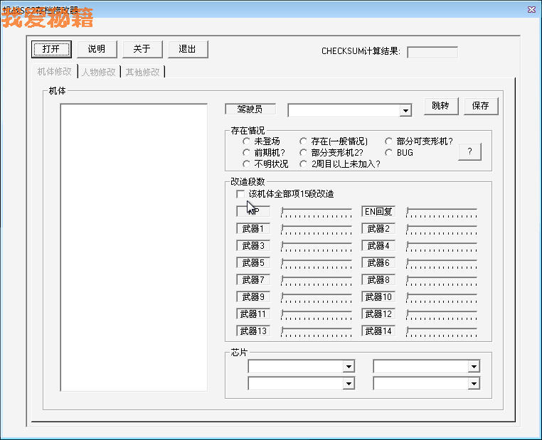 3、在机体修改和机师修改两部分,每修改完一机(人)就要按一次保存,不然之前的改动会无效。