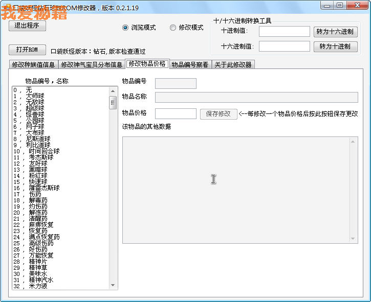 1、新增浏览ROM内物品信息的功能,并支持对物品价格的修改