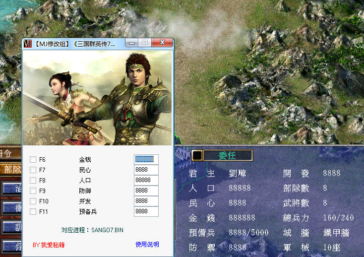 在游戏大地图界面选中我方任意城池(查看当前城池详细信息)时 可按对应键位进行修改,否则修改无效。