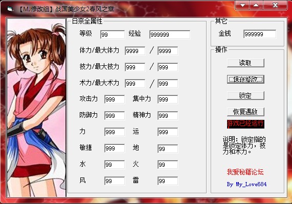 战国美少女2:春风之章主角属性修改器