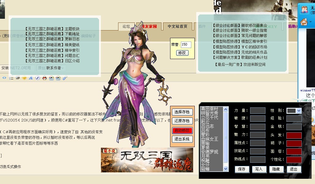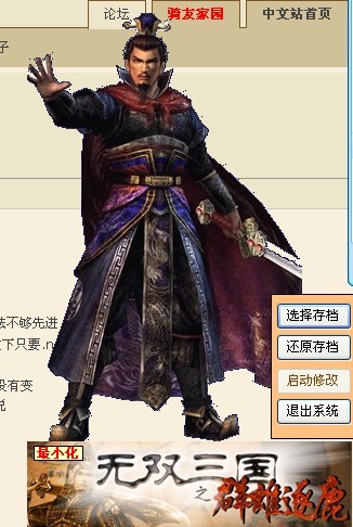 4、整个修改器启动,呵呵,职责所在,顺便宣传了一下无双MOD,另外添加了一些常用的新手导航,比如修改器集合、装备导入等等问题