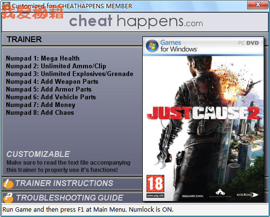 2、游戏主菜单按 [F1] 激活修改器,激活成功会有 Activated 声音提示