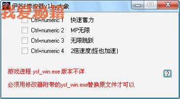 复制压缩包中的ysf_win.exe到游戏目录覆盖原文件。最好备份1下。出问题的话就不要用了。这个exe文件去掉了游戏反作弊检测。可以用来读取因作弊不能正常玩的存档。