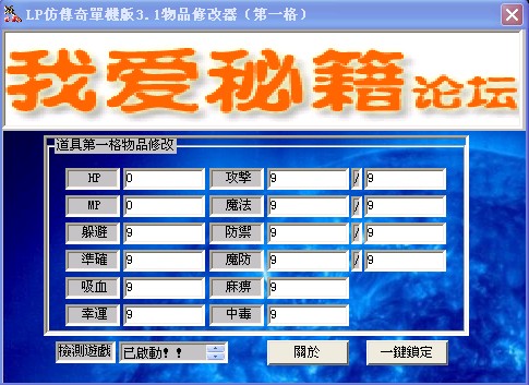 LP仿传奇单机版v3.1物品属性修改器