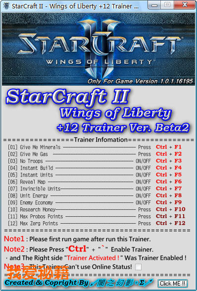 | 2010.08.05 | 星际争霸2v1.0.1.16195修改器 + 12 | - | - |