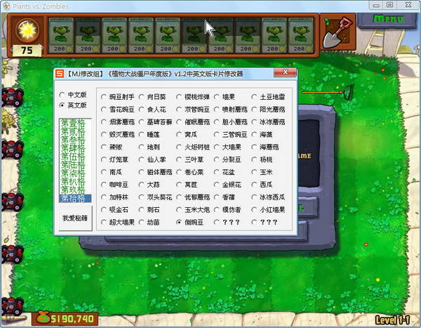 植物大战僵尸v1.2年度中英文版卡片修改器
