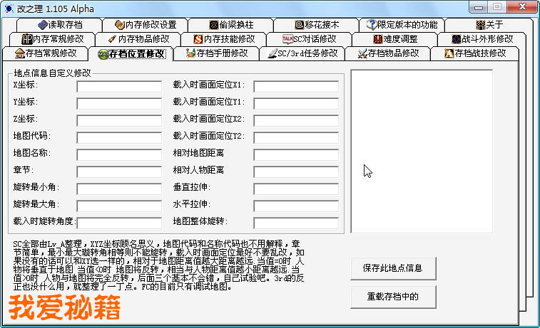 9、 “存档位置修改”,正常游戏不推荐使用,但推荐跳转的测试地图;
