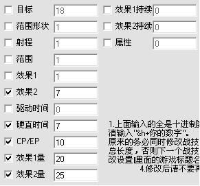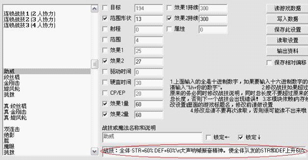 6、 “内存技能修改”,可修改: 战技、魔法的名称、说明、各种属性;