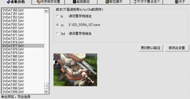 2:选[读取存档],点选SC,按[更改默认路径],选择SC存档位置,在左栏双击要加入物品的存档。