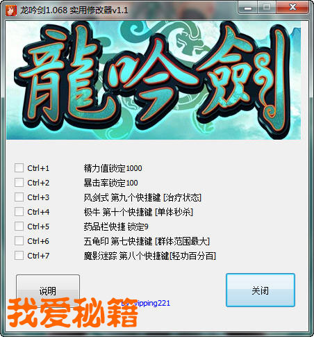武林立志传:龙吟剑v1.068实用修改器v1.1 + 7