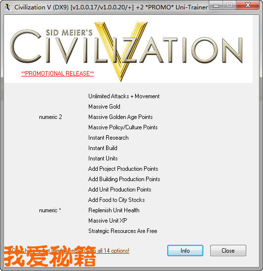文明5DX9 v1.0.0.17 & v1.0.0.20修改器(PROMO) + 2