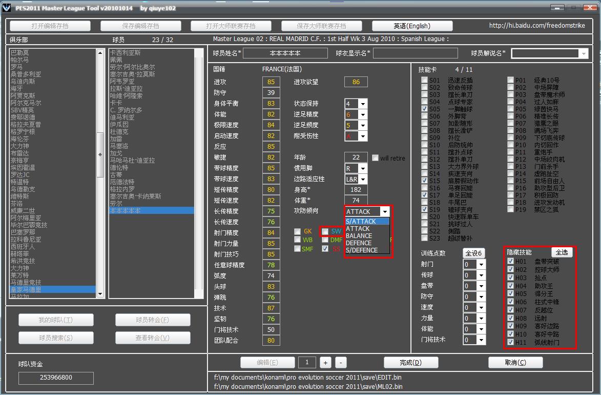 1. 球员注册位置修改 -- 可以恢复SW了……
