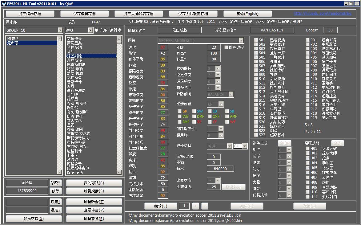 | 2011.01.01 | 实况足球2011大师联赛修改器:ML Tool v20110101 | - | - |