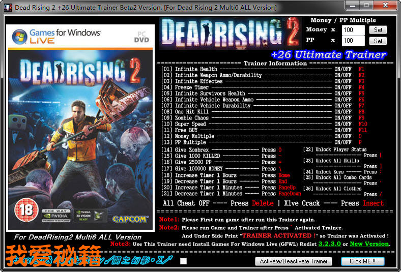 Dead Rising 2 Ultimate Trainer For PC Windows