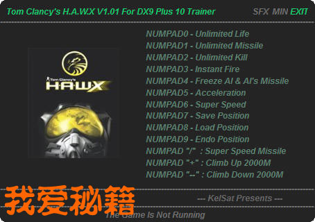 对应版本:Tom.Clancys.H.A.W.X-SKIDROW (柳宿发布的版本)