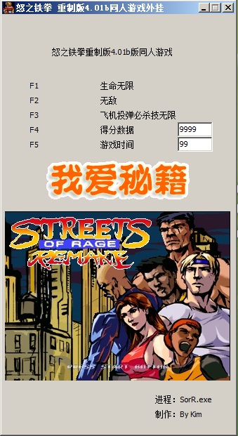 因看在论坛上朋友们的需求,特找时间做的 精心制作 怒之铁拳重制版4.01b同人游戏外挂 特发布。游戏值得玩啊,不错的游戏那个朋友奖励能不能给我啊? 呵呵。反正祝大家游戏快乐。不是用易语言写的。一会儿写。。。